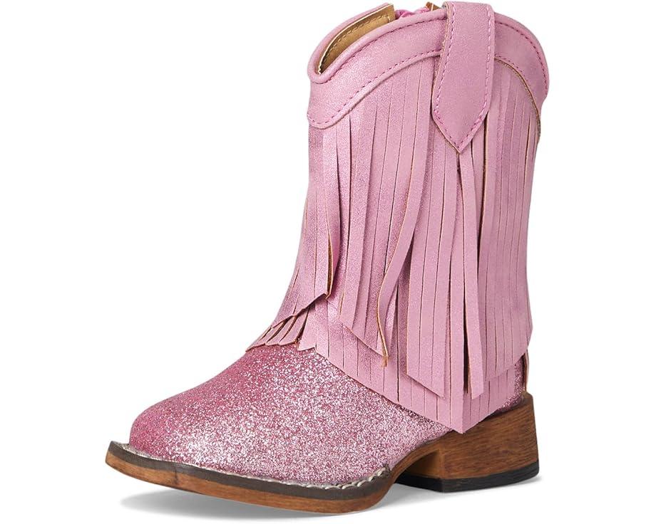 Добавьте немного гламура к ее стилю одежды в стиле вестерн с помощью сапог Roper Double Fringe. Синтетический верх с бахромой на голенище, блестящие детали на мыске, внутренняя молния для легкого надевания и снимания и квадратный носок.