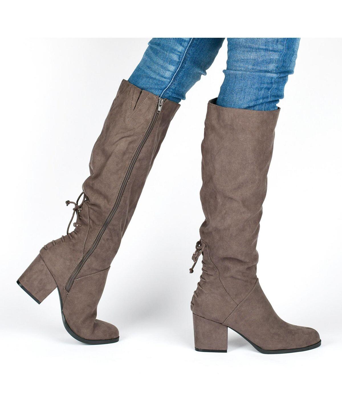 Измените его с помощью ботинок Leeda от Journee Collection. Эти очаровательные ботинки на каблуке украшены шнуровкой сзади и бантом в завершение. При необходимости сбоку также имеется растягивающаяся полоска. Вы будете выглядеть великолепно в этих красивых ботинках на каблуке из искусственной замши (полиэстера, полиуретана).