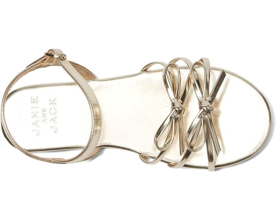 Сандалии Janie and Jack Gold украшены очаровательными деталями в виде банта, что добавляет нотку сладости в наряд вашего ребенка. Эти сандалии оснащены регулируемым ремешком на щиколотке с пряжкой, что обеспечивает надежную и удобную посадку. Эта обувь с низким верхом, изготовленная с полиуретановой стелькой для комфорта, имеет легкую подошву из картона.