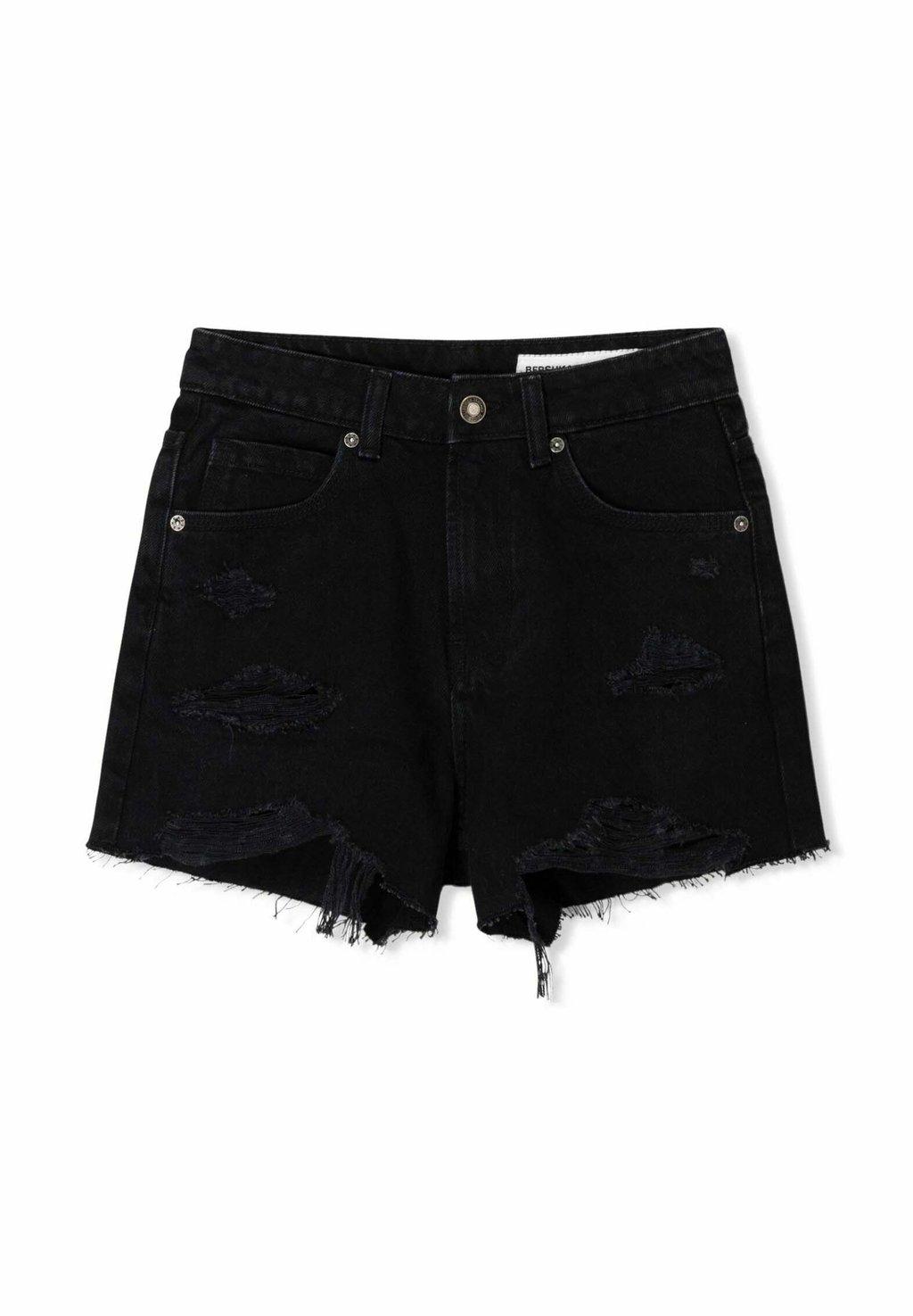 Джинсовые шорты RIPPED Bershka, черный 4 311₽
