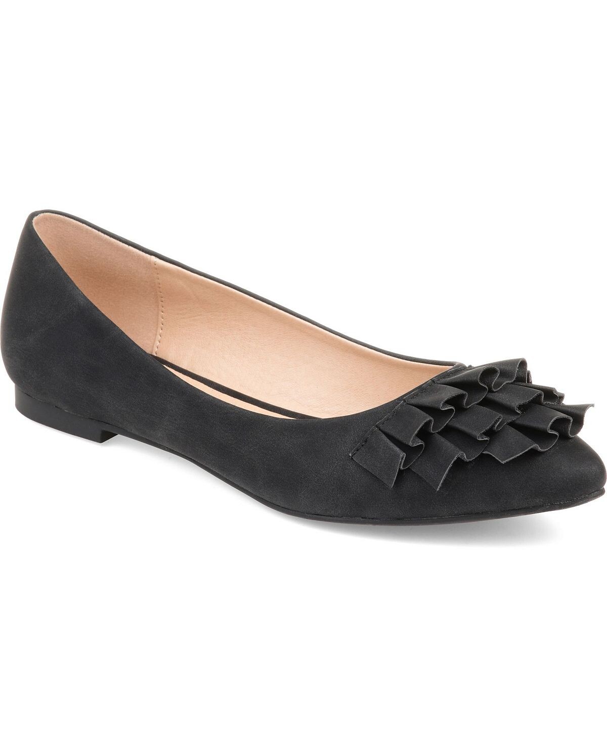 Окунитесь в шикарный стиль с балетками Journee Collection. Эта обувь имеет классический дизайн с острым носком и рюшами. Подошва выполнена из красивой ткани из искусственной кожи, сохраняющей форму силуэта. Это идеальная квартира для любого случая.