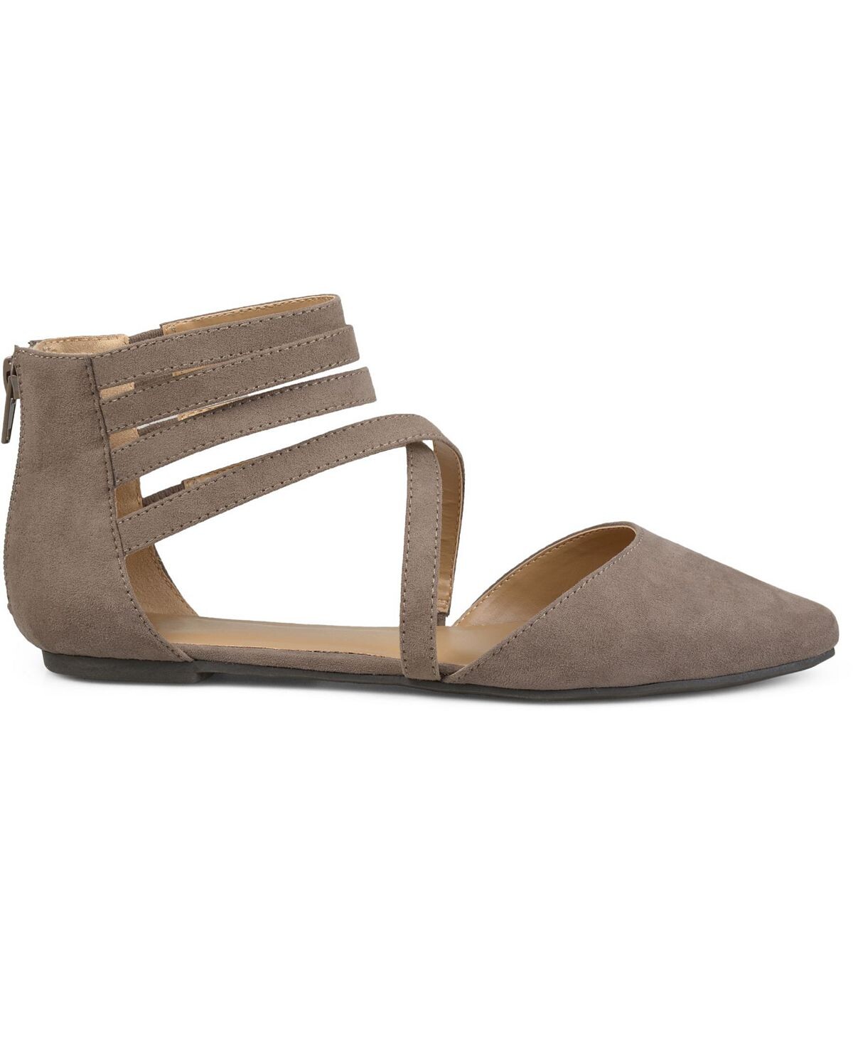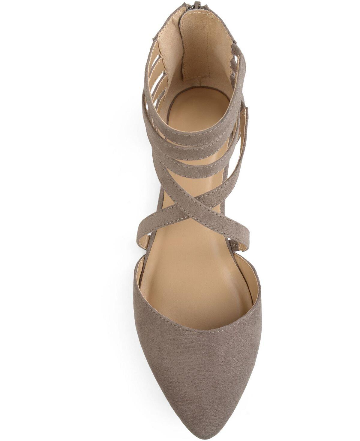 Окунитесь в стильный дизайн с балетками с ремешками на щиколотке от Journee Collection. Эти шикарные туфли на плоской подошве имеют верх из искусственной замши с ремешками, охватывающими лодыжки. Заостренный носок и закрытые каблуки с молниями завершают образ.