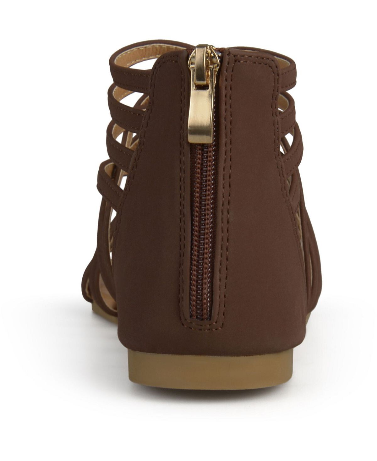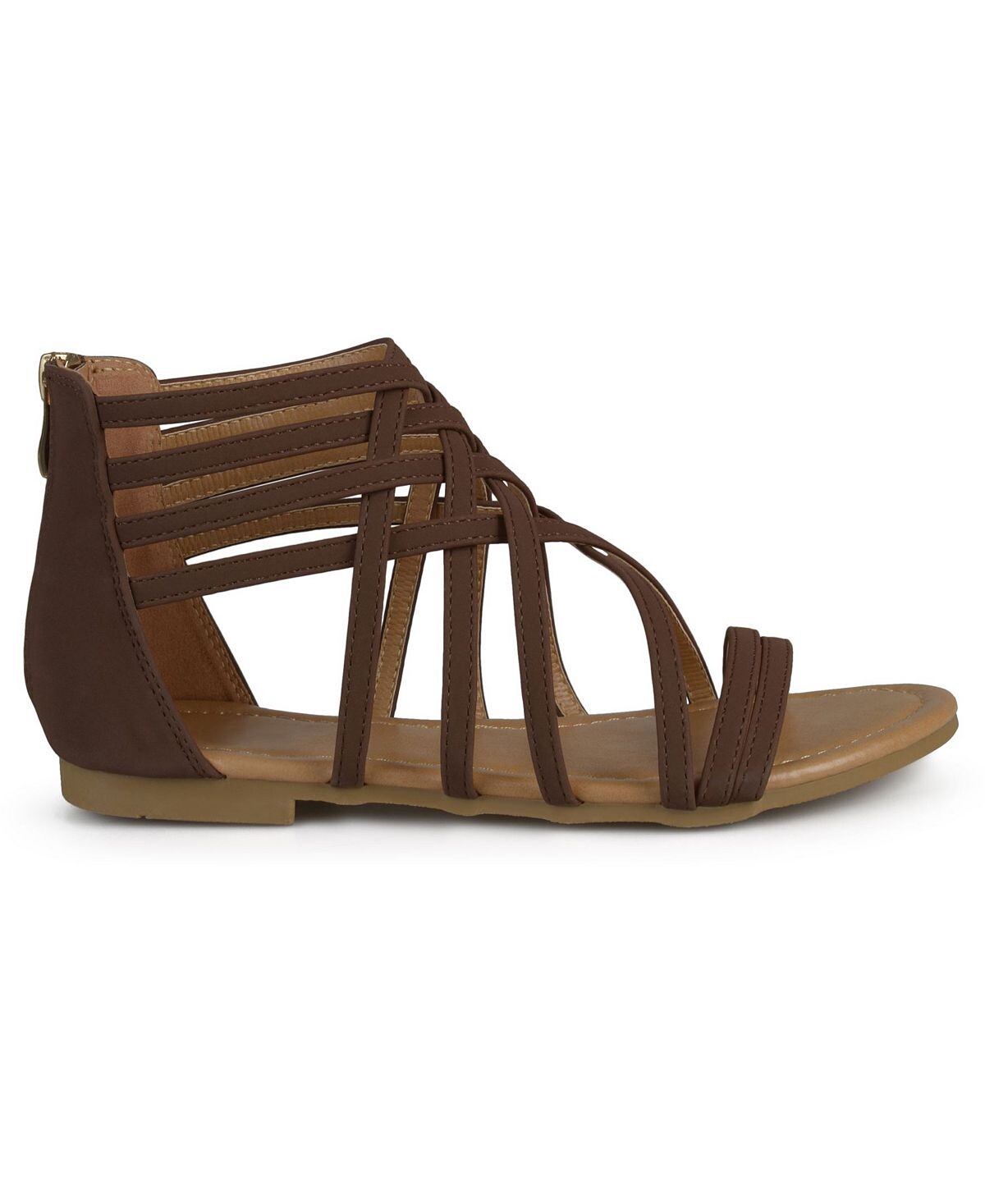 Продемонстрируйте лучший образ в стиле бохо в этом сезоне с помощью сандалий на плоской подошве с ремешками от Journee Collection. Замысловатые бретельки перекрываются друг с другом и создают узор корзины, создающий декоративный вид, а закрытые каблуки с застежкой-молнией завершают образ.