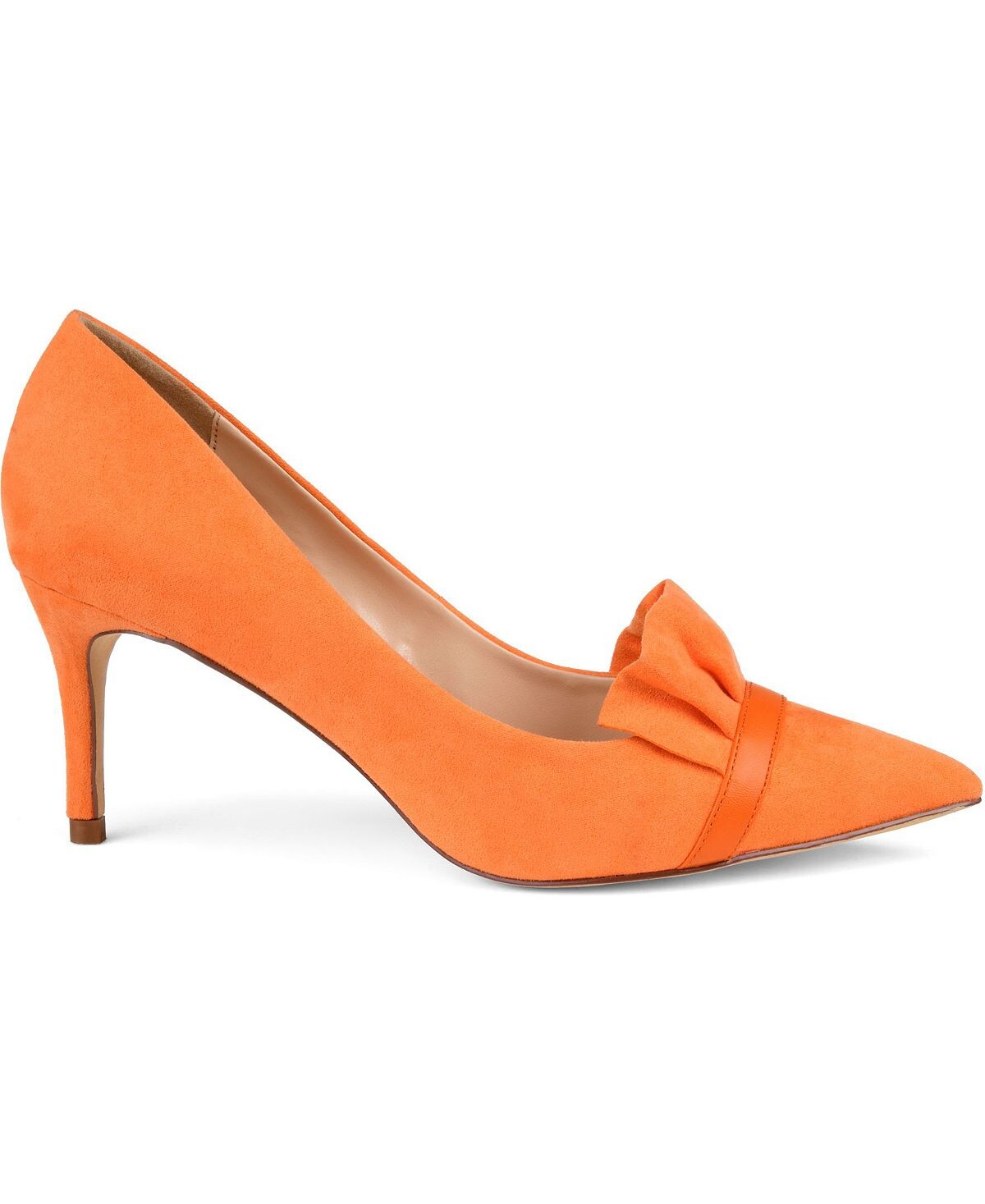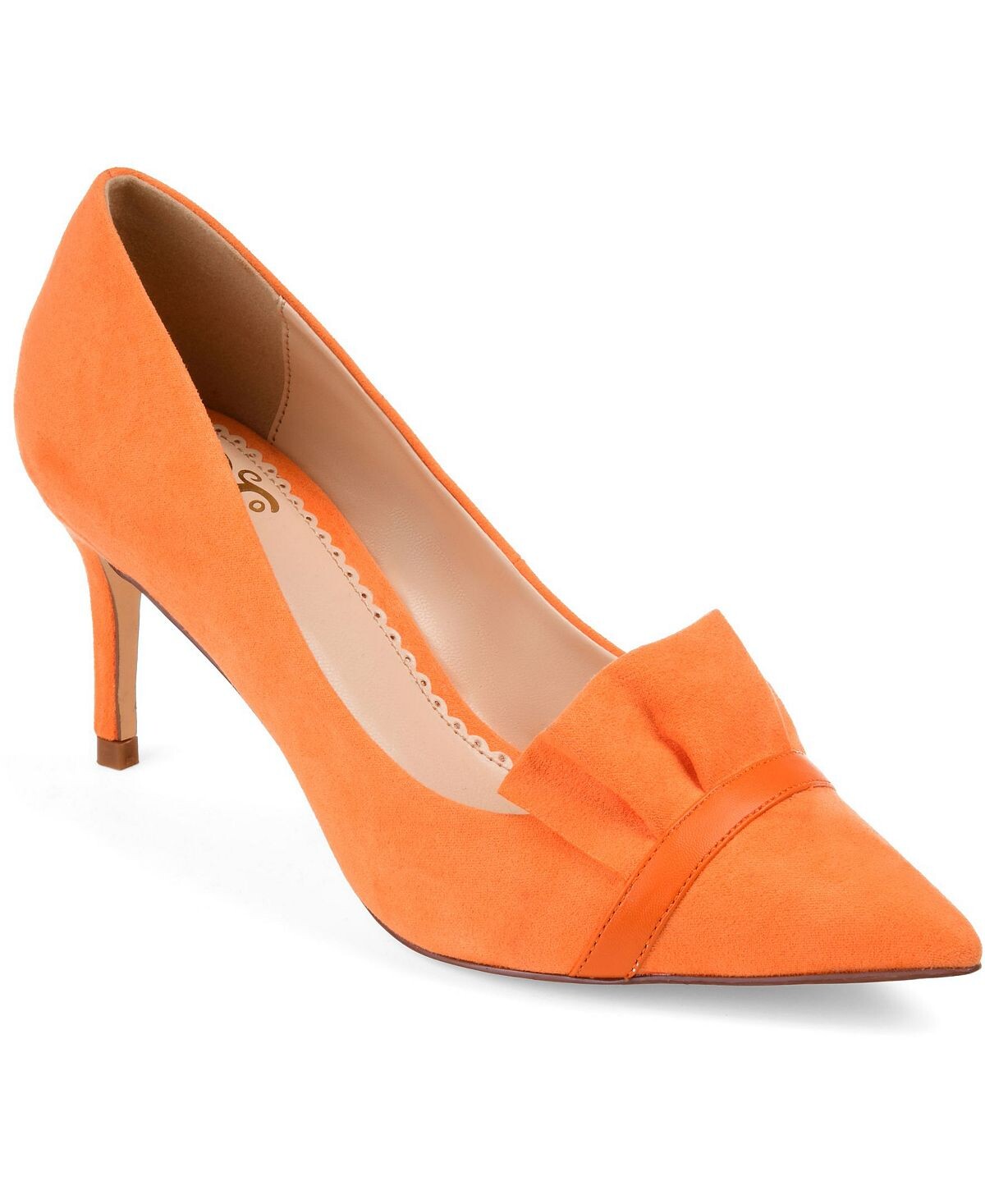 Подчеркните элегантный стиль в туфлях-лодочках с рюшами от Journee Collection. Эти туфли-лодочки с острым носком имеют верх из мягкой искусственной замши и рюши на пальцах. Узкие высокие каблуки-шпильки добавляют идеальную высоту этому классическому дизайну лодочек.