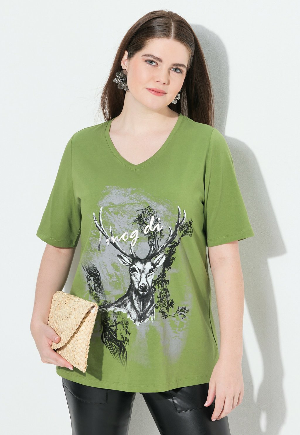 Футболка с принтом DEER SHORT SLEEVE GRAPHIC TEE Ulla Popken, оливковый