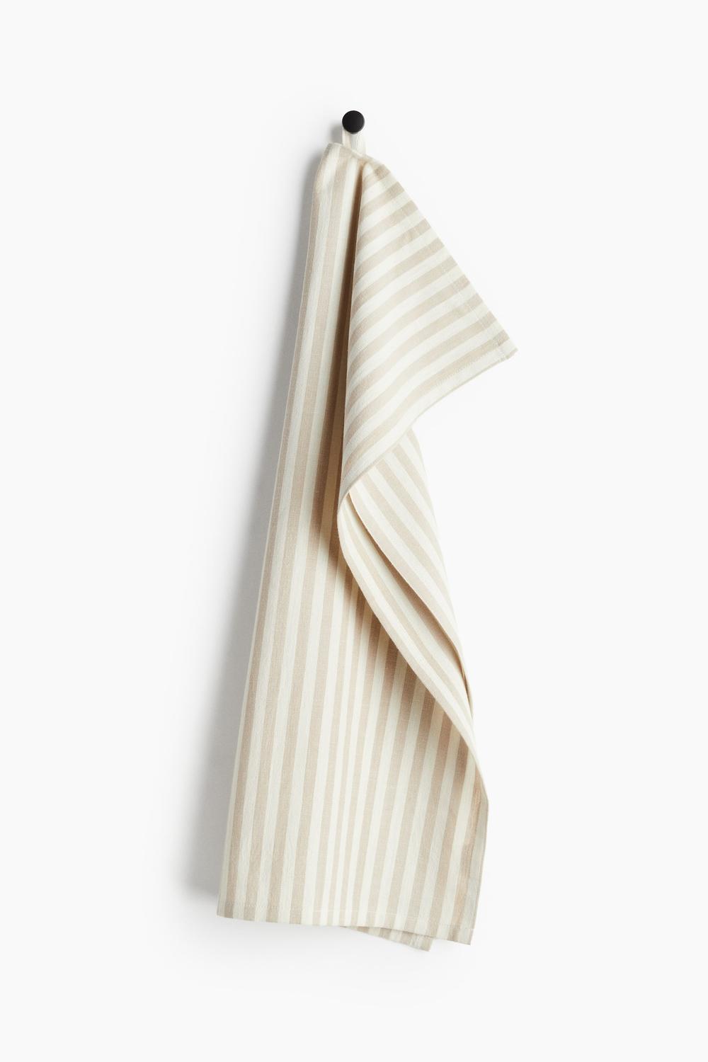 Кухонное полотенце из хлопчатобумажной ткани с петлей для подвешивания с одной стороны.