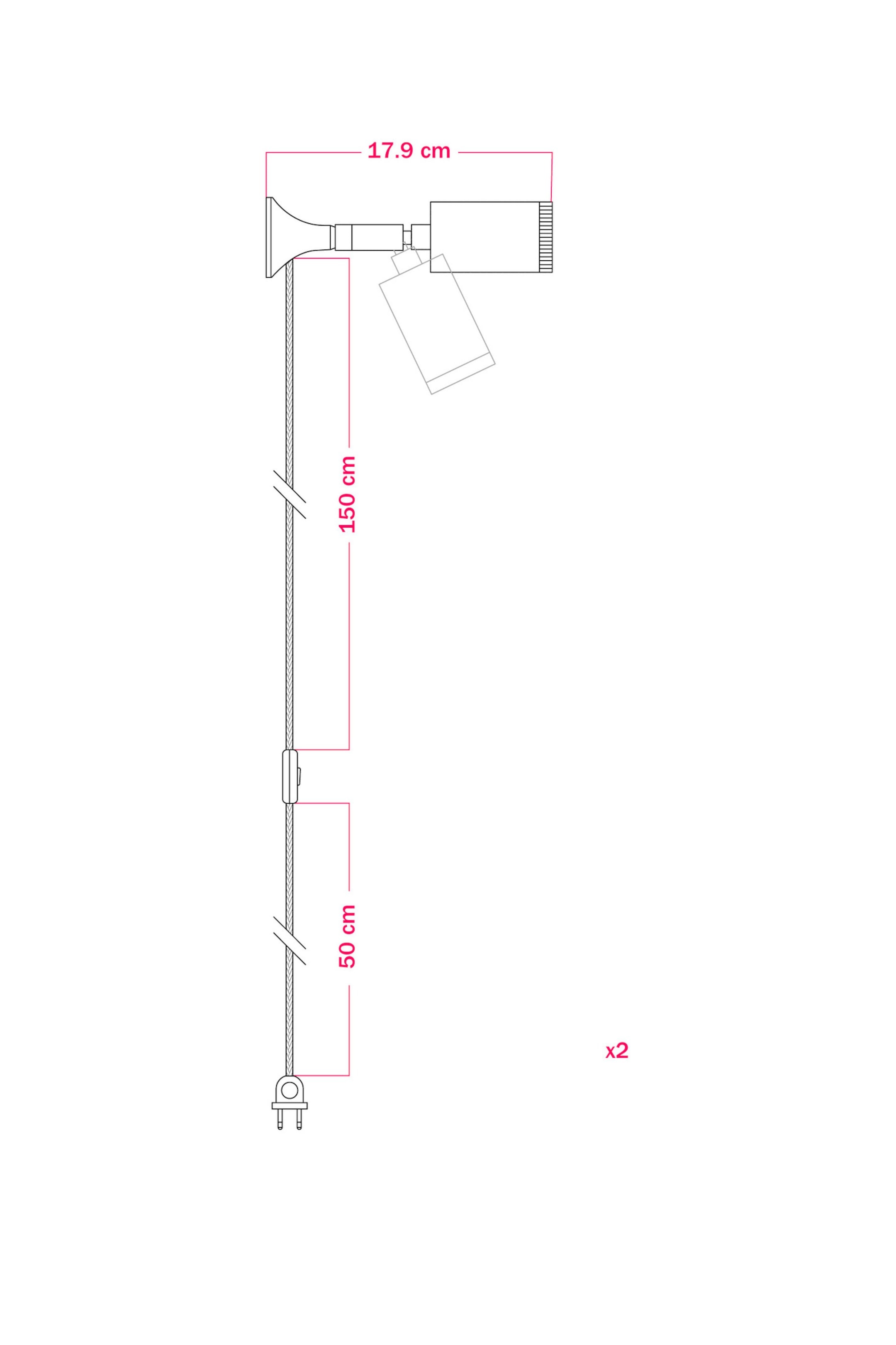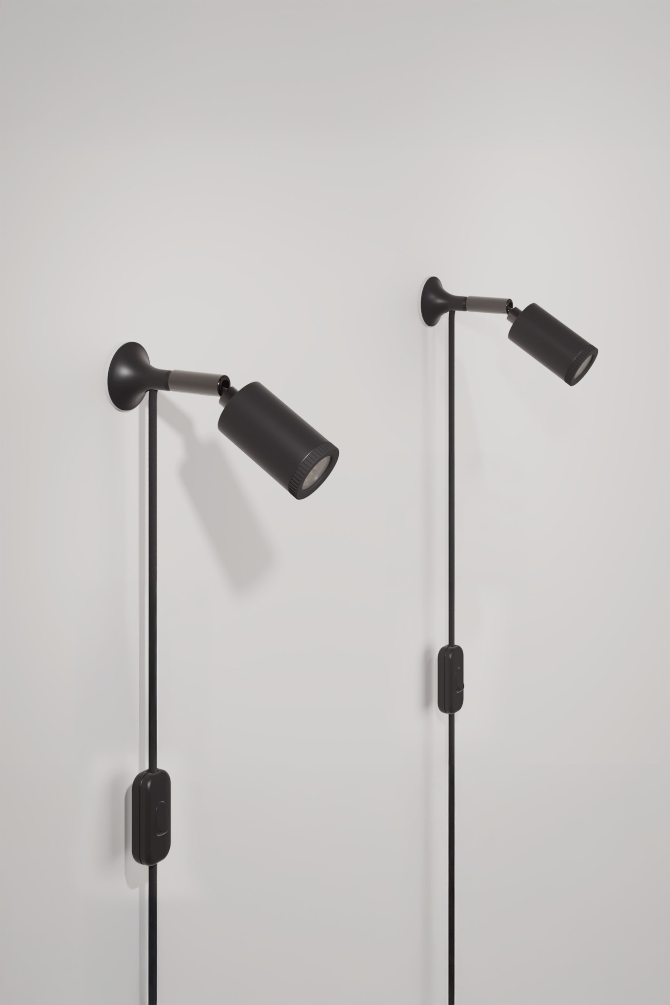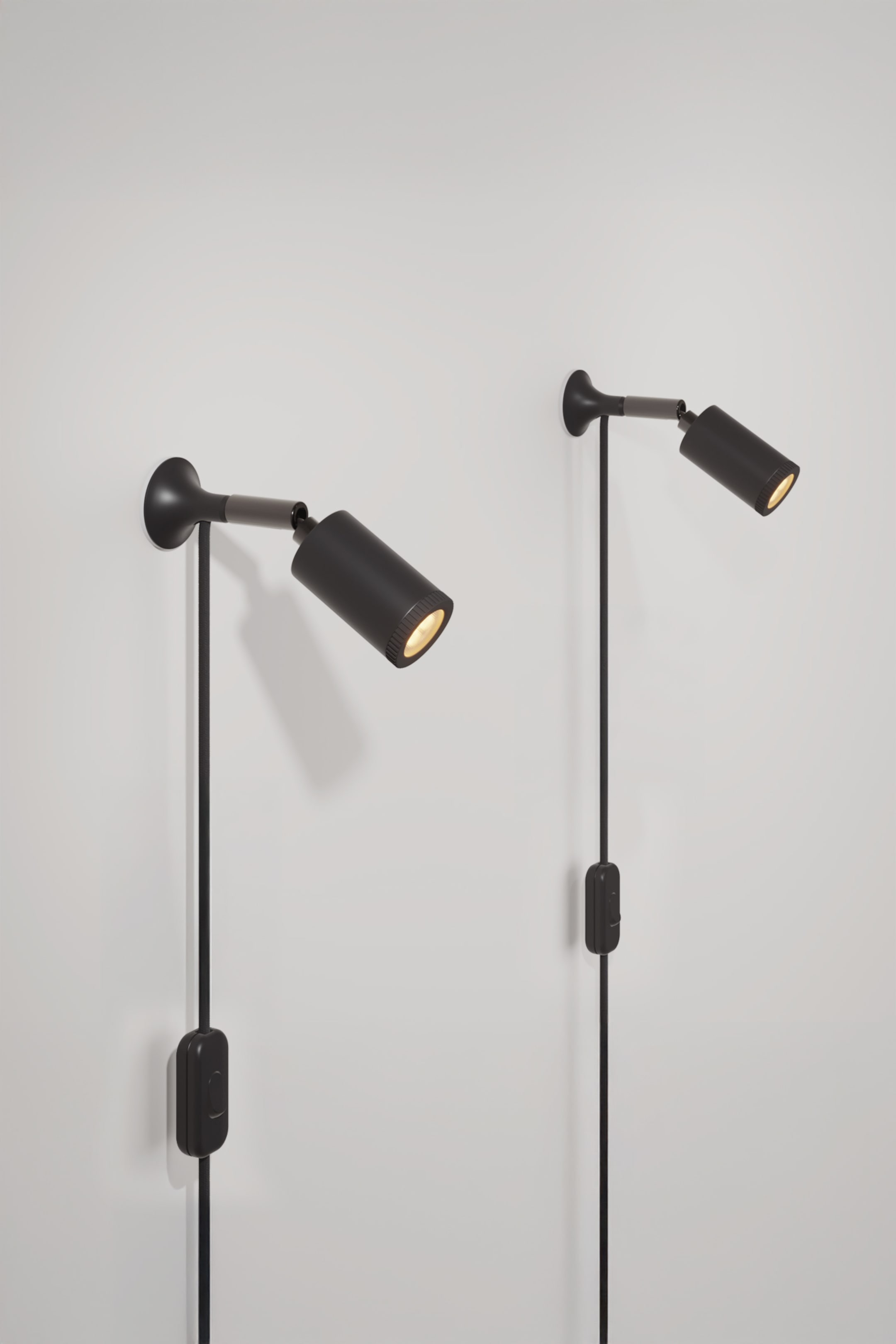 Комплект из двух настенных точечных светильников с современным дизайном и магнитным креплением. Металлический шарнир позволяет регулировать источник света: наклон до 90° и поворот на 315°. Кабель в текстильной оплетке с пластиковым выключателем.