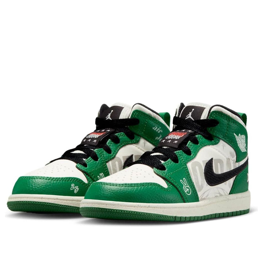 Кроссовки (PS) Air Jordan 1 Mid SE 'Overbranded', зеленый