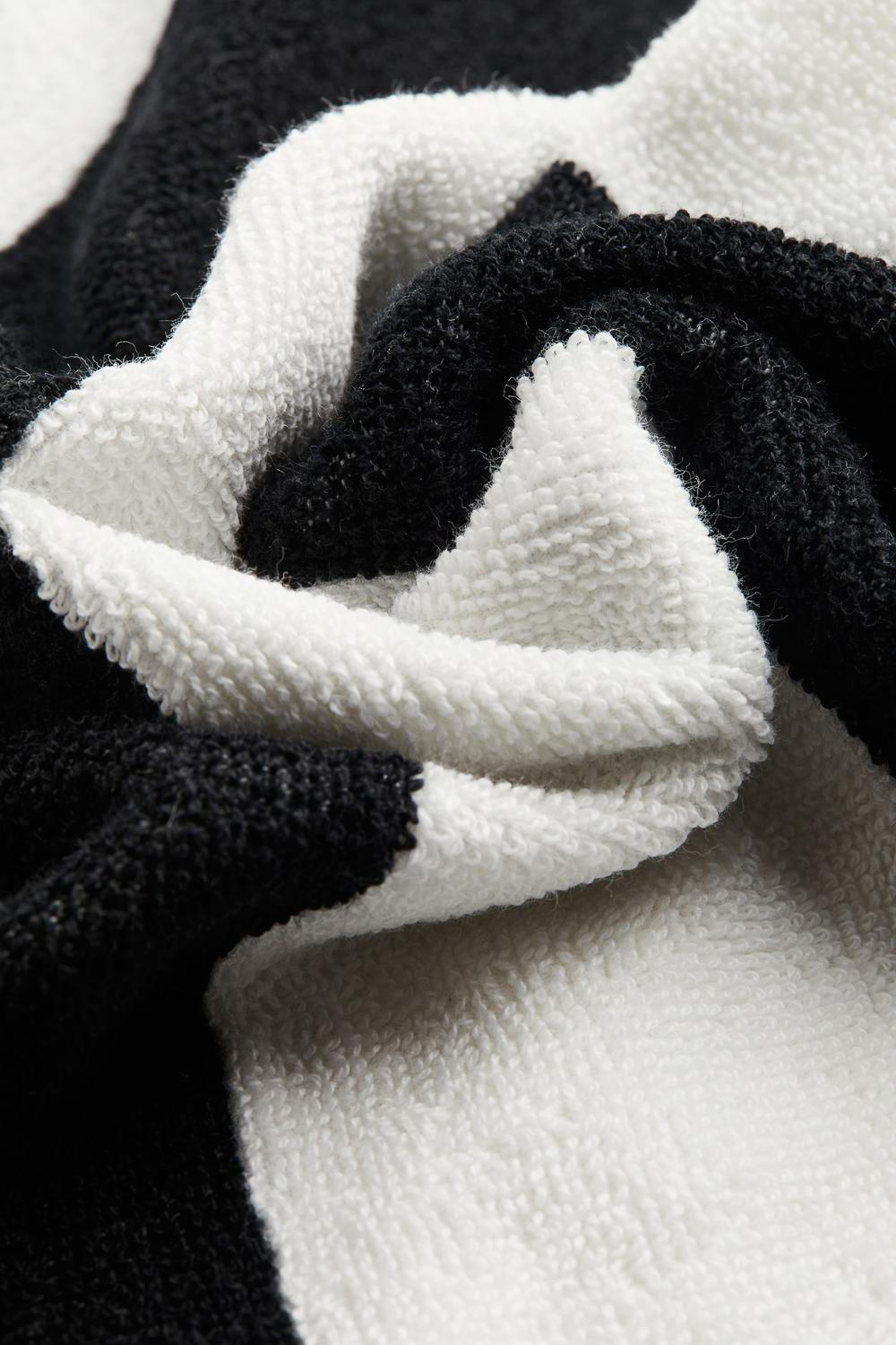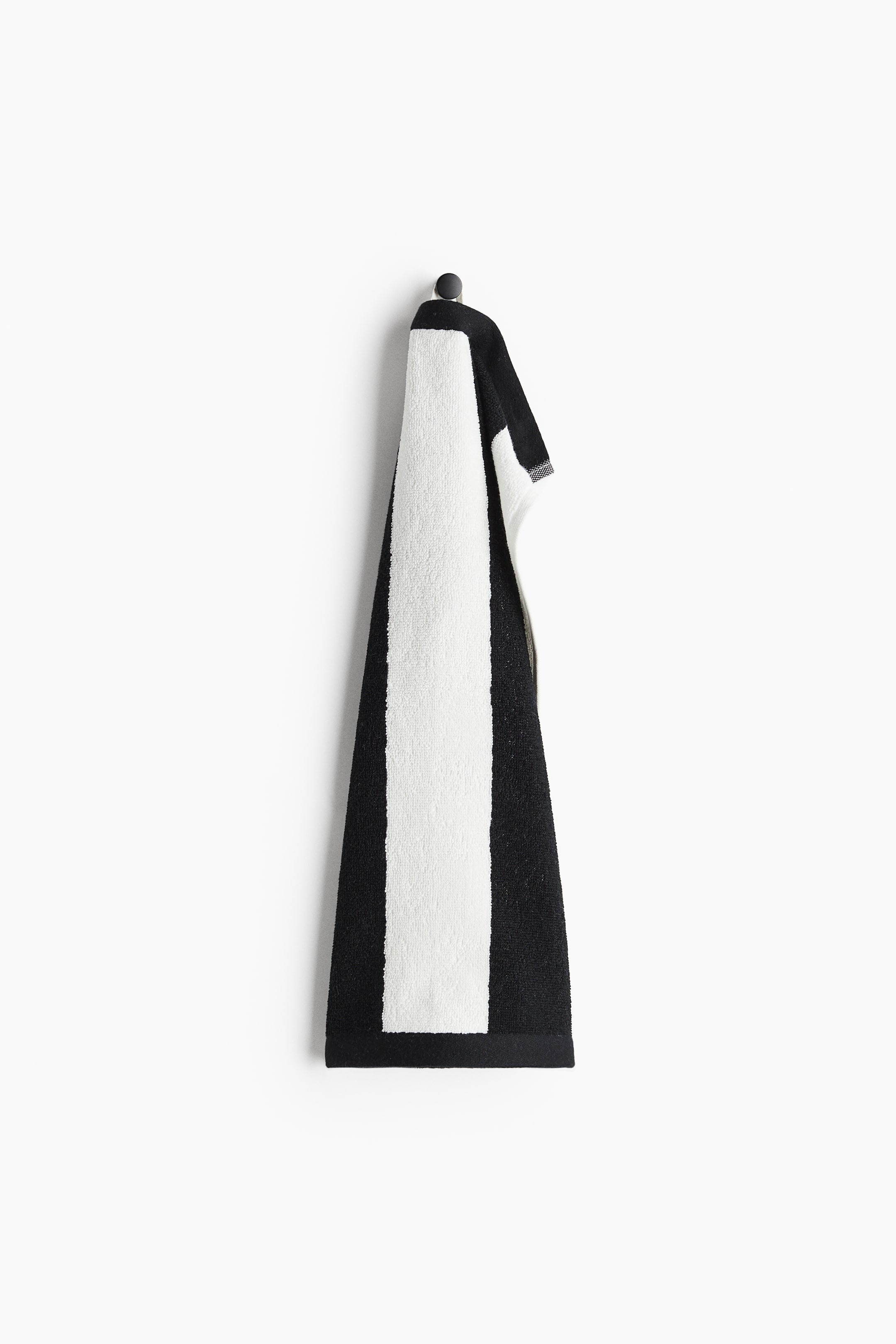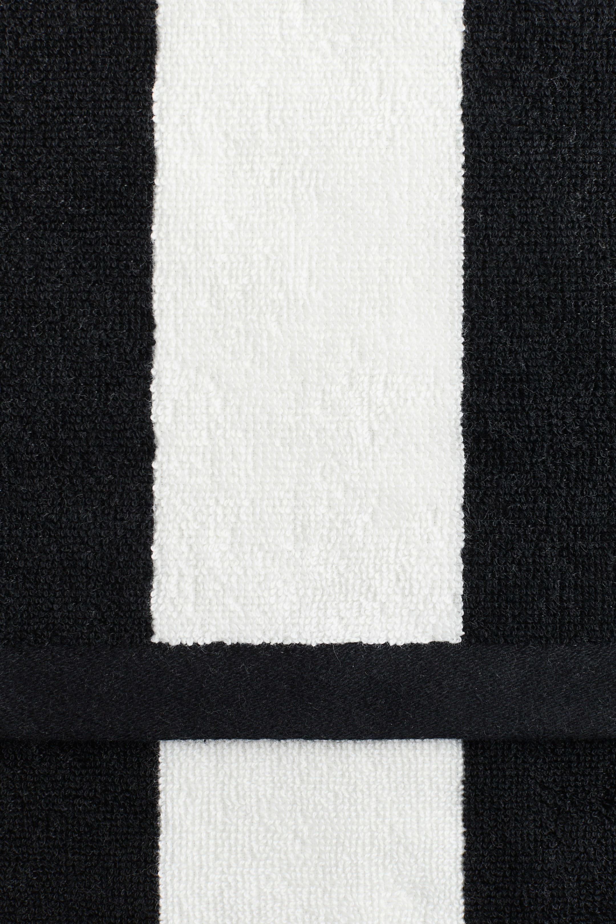 Гостевое полотенце из мягкой махровой хлопковой ткани. С полосатым узором и вешалкой на короткой стороне.