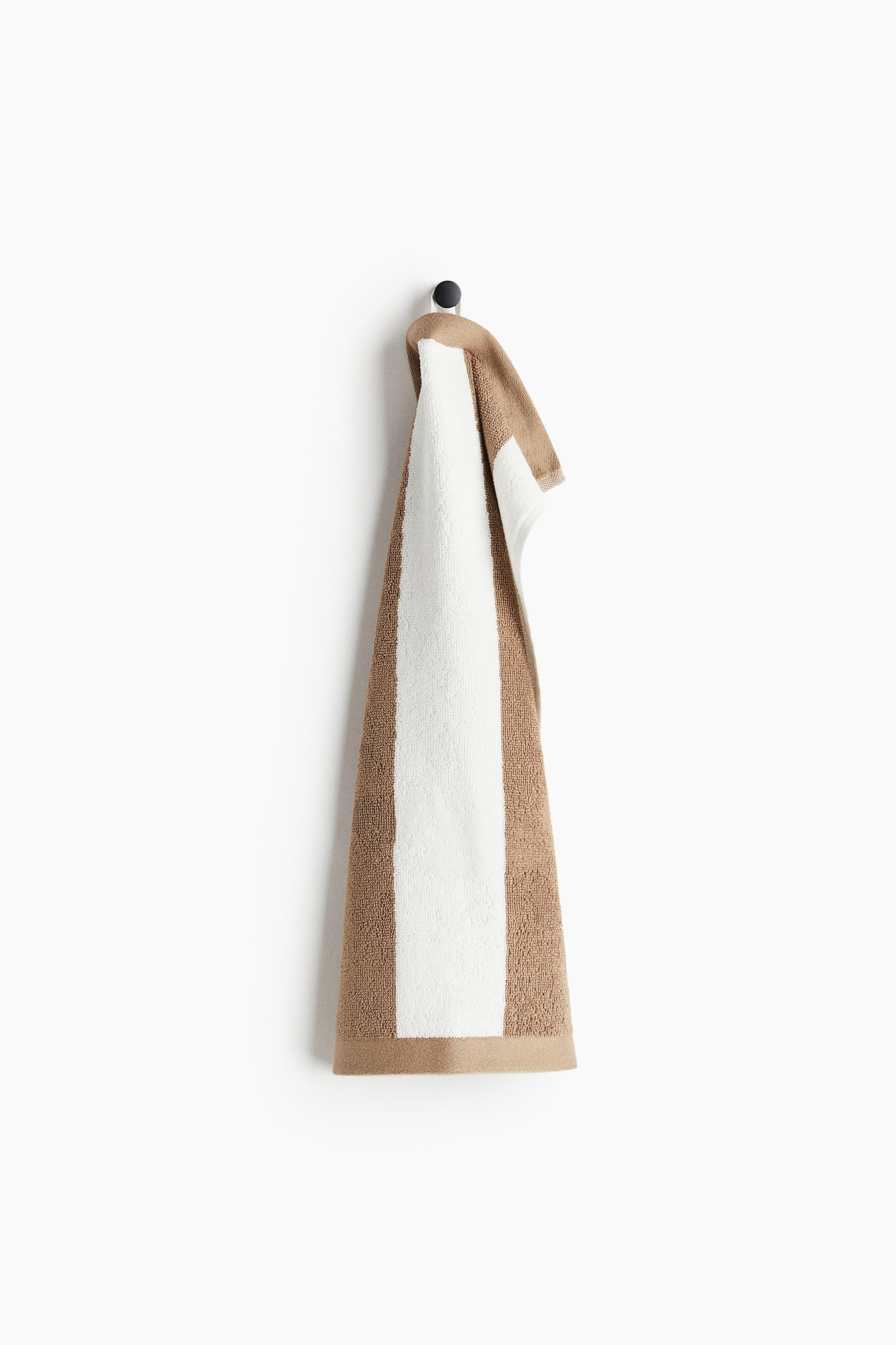 Гостевое полотенце из мягкой махровой хлопковой ткани. С полосатым узором и вешалкой на короткой стороне.