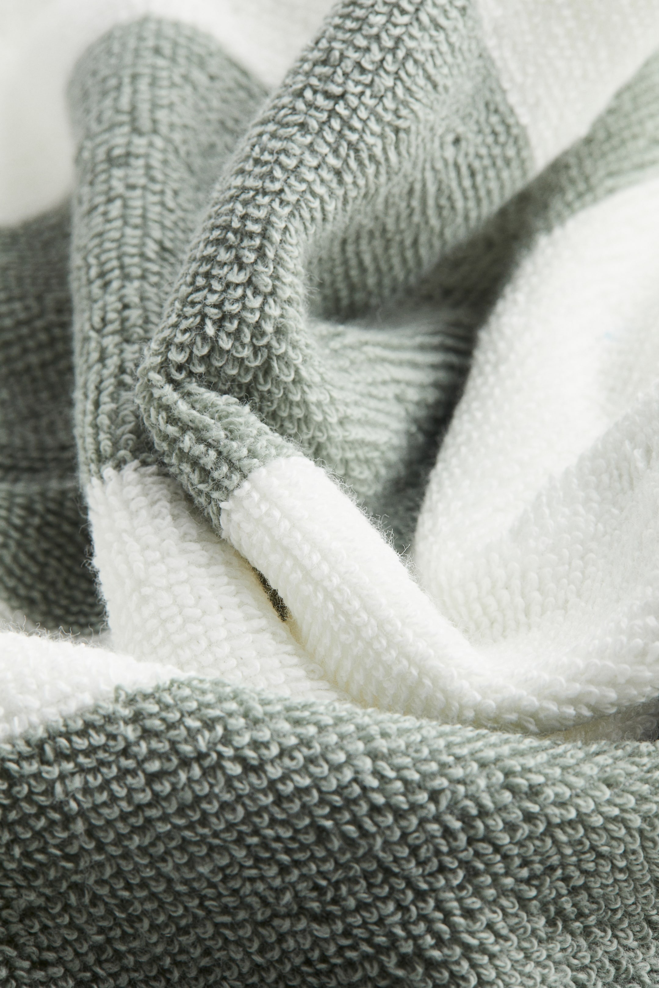 Гостевое полотенце из мягкой махровой хлопковой ткани. С полосатым узором и вешалкой на короткой стороне.