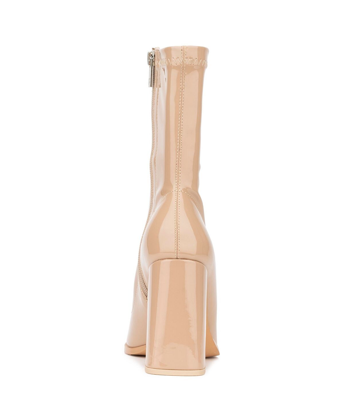Сияйте ярко в ботильонах Zana. Квадратный носок с металлическим акцентом, высокий блочный каблук и застежка на молнию сбоку.