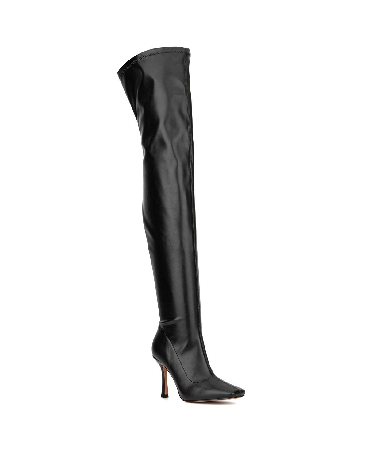 Сапоги «выше колена» выглядят стильно. Каблук-катушка, широкая голенище, приталенный дизайн и квадратный носок.
