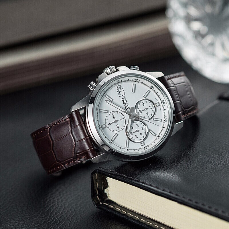 Часы CASIO Edifice Waterproof Men Black/Silver Mens Brown Analog, коричневый