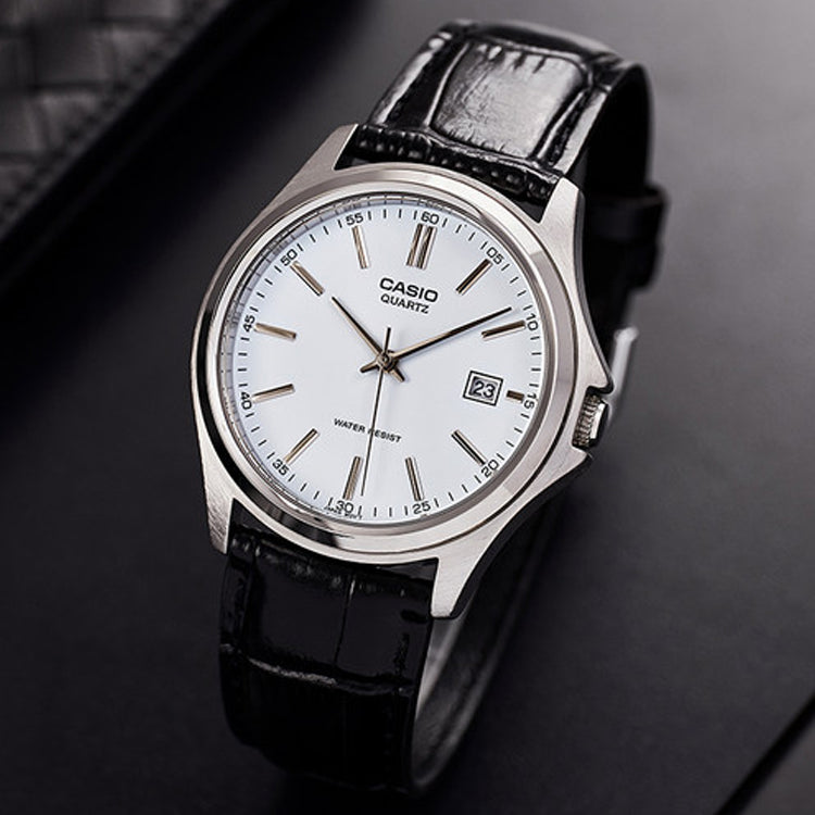 Часы CASIO Leather Band Waterproof Men White/Brown White DialBlack Strap Mens WhiteBlack Analog