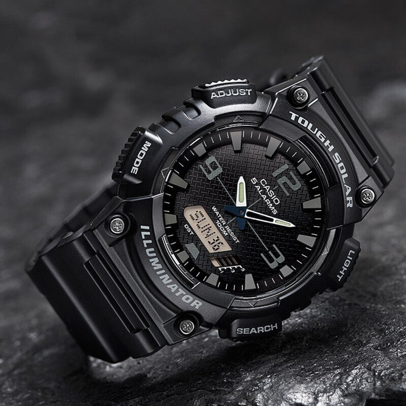 Часы CASIO Waterproof Sports Solar Powered Mens Black Analog/Digital Combo, черный