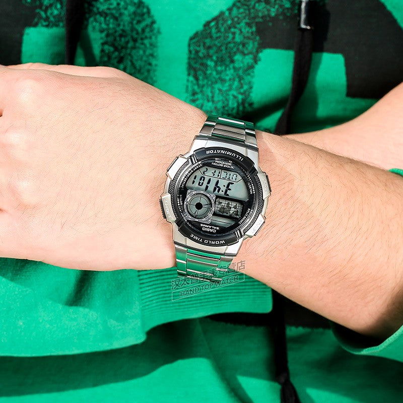 Часы CASIO Waterproof Sports Stainless Steel Strap Mens Black Digital, черный