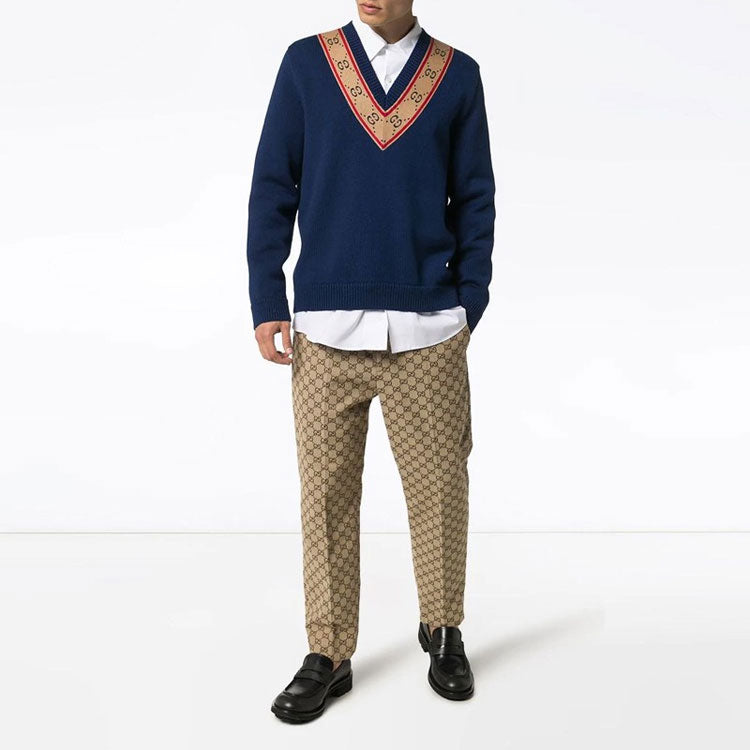 Свитер Gucci GG V-neck Wool Sweater 'Blue', синий 82 793₽