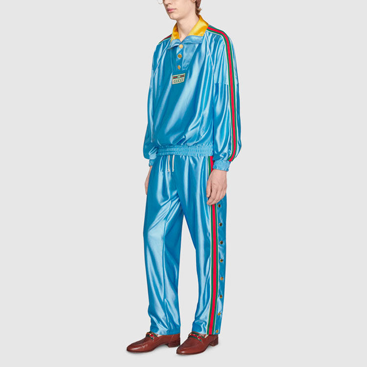 Спортивные брюки Gucci Shiny Jersey Jogging Pant With Web 'Azure', синий 77 626₽