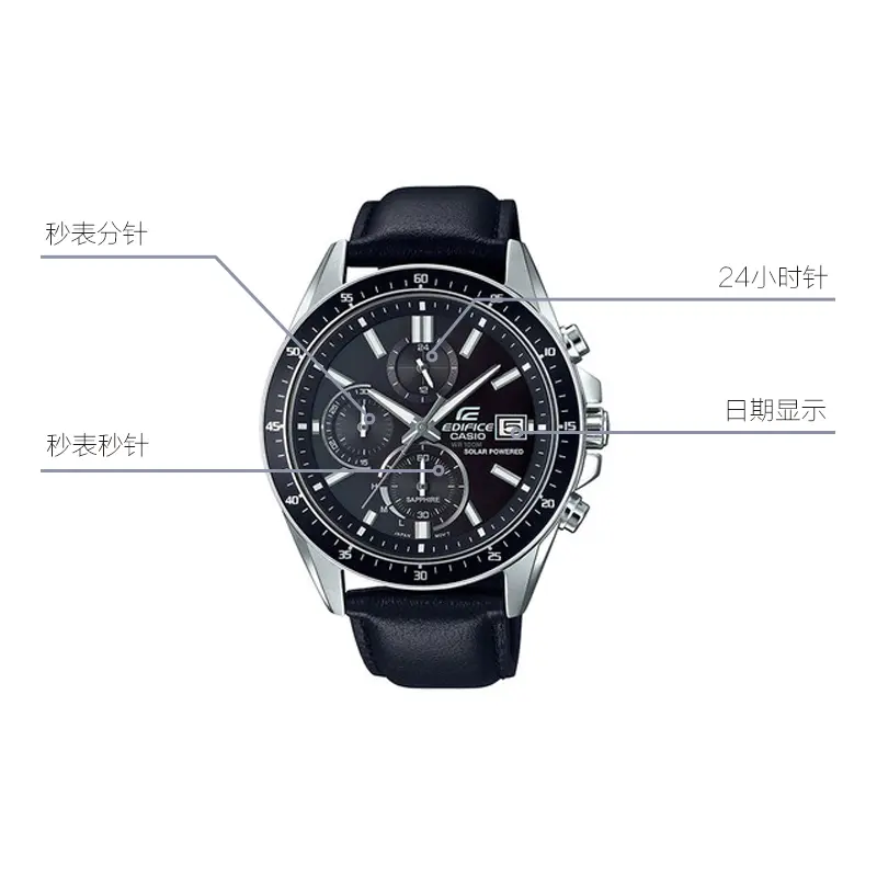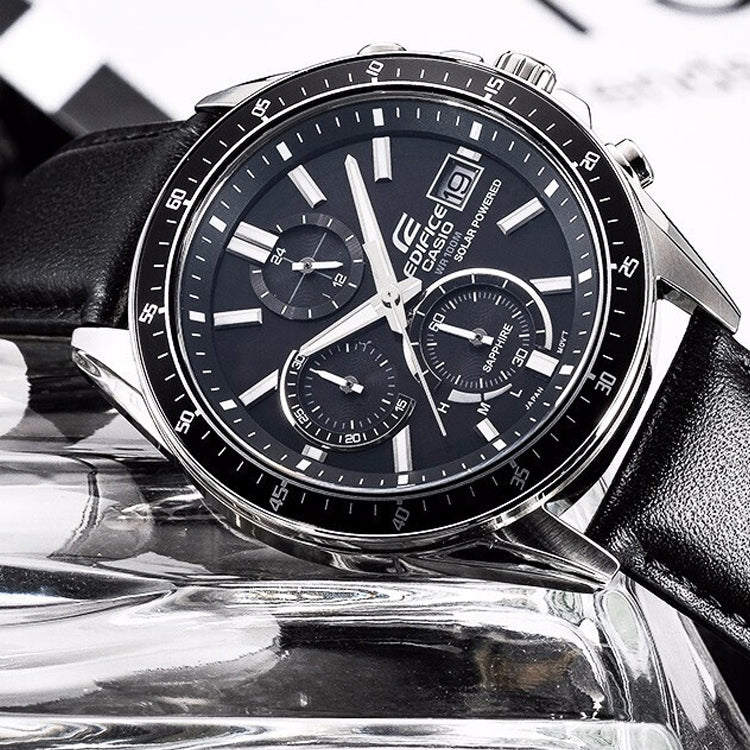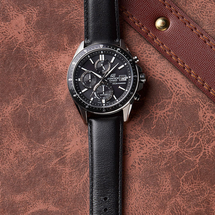 Часы CASIO EDIFICE Waterproof Sapphire Crystal Solar Powered Mens Black Analog, черный