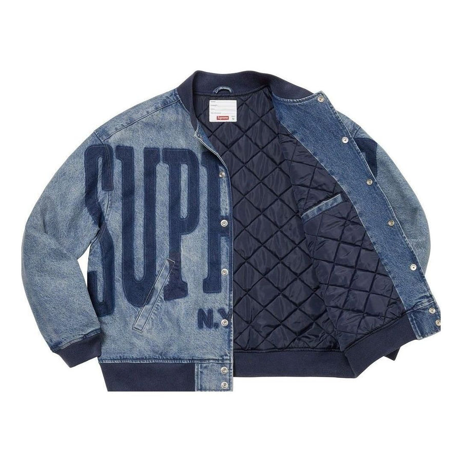 Куртка Supreme Washed Knockout Denim Varsity Jacket 'Teal'