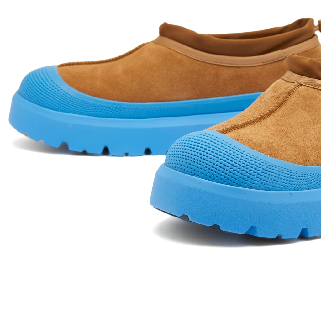 Тапочки UGG Tasman Weather Hybrid, защищённые от непогоды и готовые к любым нагрузкам, защитят вас от дождя. Изготовленные из водонепроницаемой замши с герметичными швами, они не пропускают воду, сохраняя классический дизайн UGG. Яркая синяя подошва обеспечивает дополнительную защиту, а стелька с фиксатором обеспечивает надёжную фиксацию лодыжки.