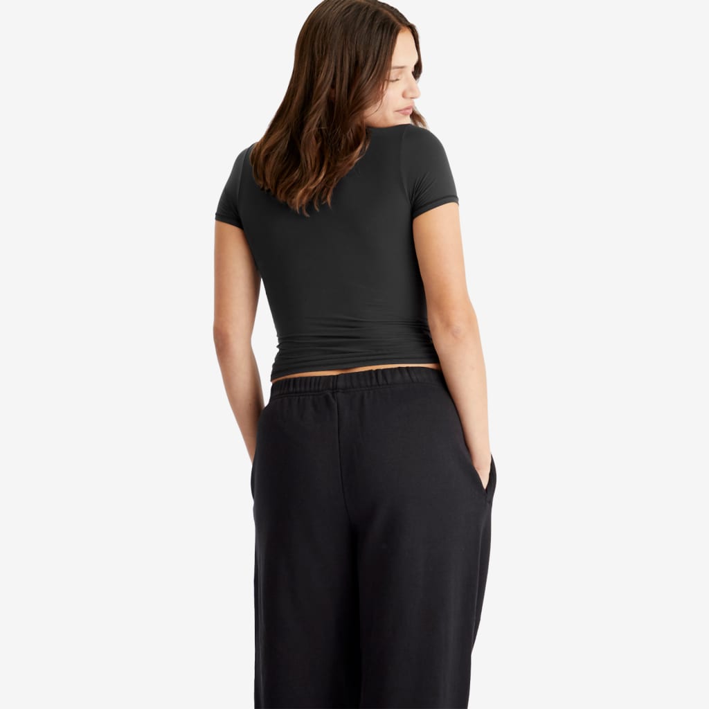 Ощутите ощущение комфорта в футболке Fits Everyone от SKIMS. Эта эластичная футболка из мягкой смесовой ткани плотно облегает тело, создавая привлекательный образ. Сочетайте её с любимыми брюками и кроссовками, чтобы создать элегантный и в то же время непринужденный образ.