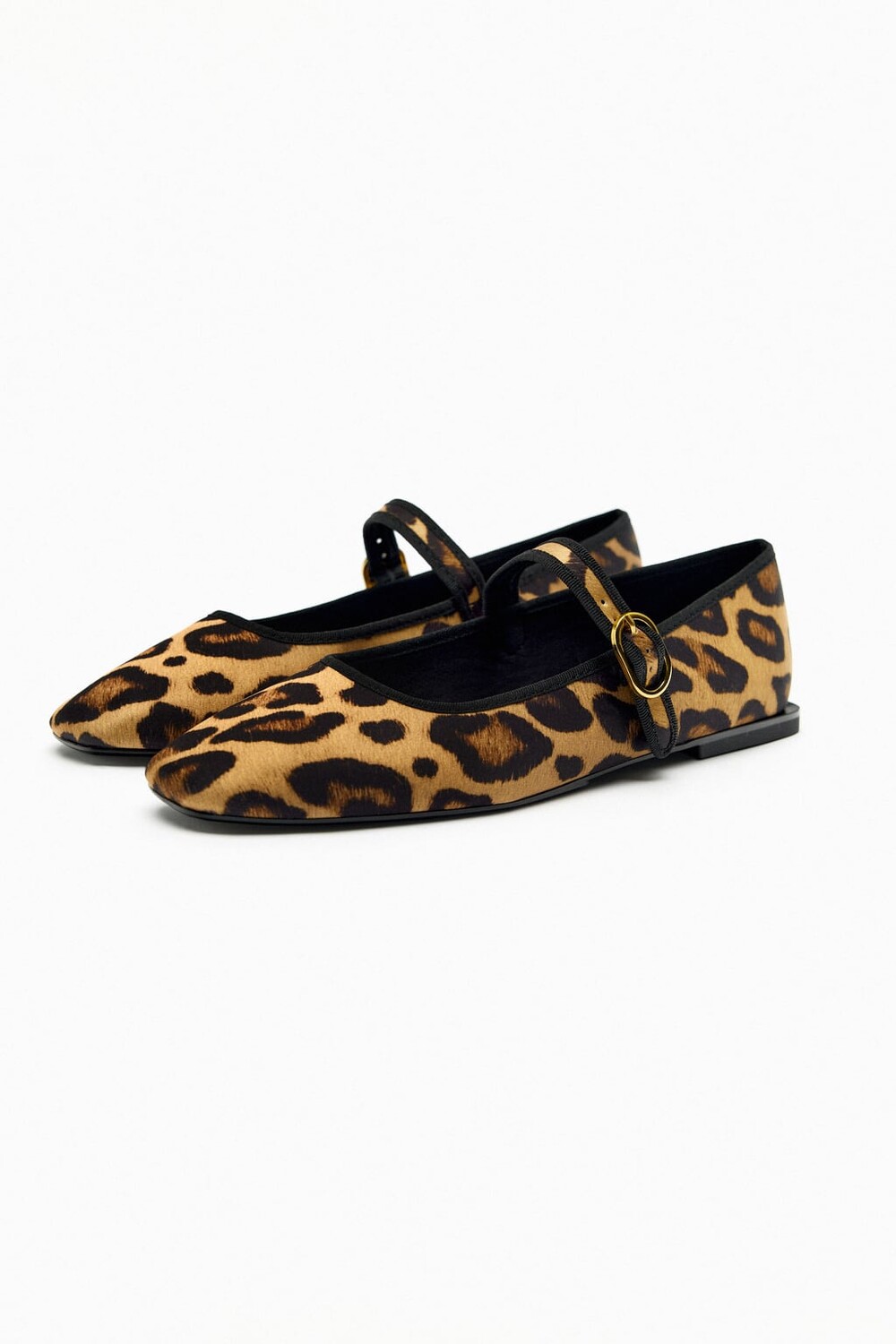 Балетки с животным принтом. Ремешок на щиколотке с пряжкой спереди.