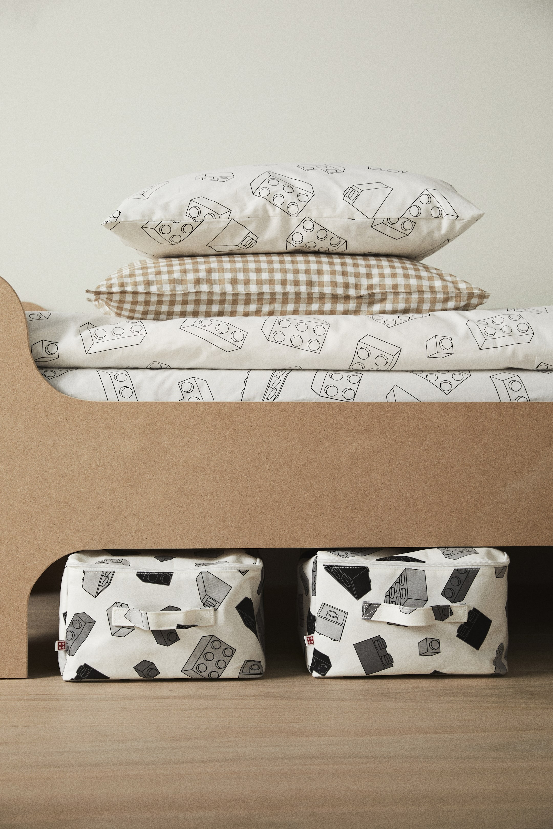Забавный контейнер для хранения из узорчатого хлопкового полотна. Ручка и застёжка-молния.
