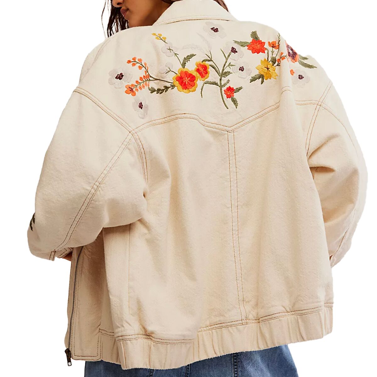 Бомбер свободного кроя из денима с вышитыми цветочными деталями