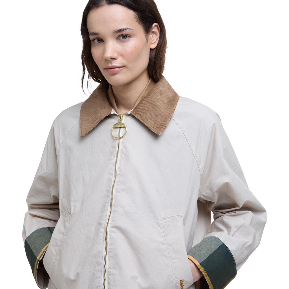 «Куртка Catlin Showerproof — мой выбор для прохладных летних дней и небольшого дождя. Хлопок с сухой ручкой обеспечивает комфорт, не создавая ощущения тяжести, а изящный А-образный крой выгодно подчеркивает фигуру. Мне нравятся такие мелкие детали, как клетчатая подкладка на манжетах и большая молния, которые добавляют нотку очарования Barbour. Это идеальное сочетание стиля и функциональности для многослойной одежды в любое время года».
