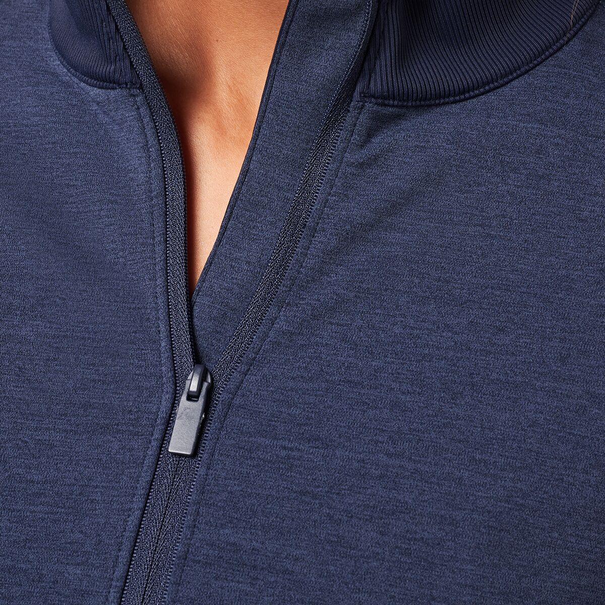 Эта куртка с молнией по всей длине, созданная с использованием технологии Moveknit, отводит влагу и не сковывает движений при каждом повороте и шаге. Высокий воротник обеспечивает дополнительную защиту, а приталенный крой позволяет легко надевать куртку поверх любой одежды. Это идеальный баланс функциональности и стиля для активного образа жизни.