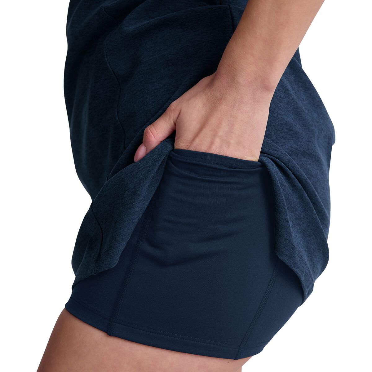 «Мне нравится, насколько универсально это платье! Оно достаточно спортивное для однодневного похода, но при этом достаточно стильное для бранча. Скрытый под ним боди — это нечто особенное: невероятно удобное и практичное. К тому же, ткань Spacedye невероятно мягкая, отводит влагу и идеально подходит для прохлады в теплые дни».