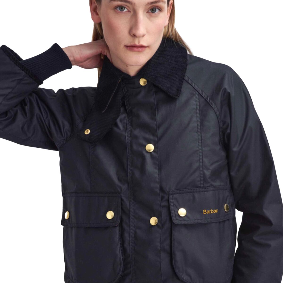 Укороченная вощеная куртка Barbour Beadnell Wax Jacket привнесет современный вид в наш гардероб благодаря укороченной модели, золотистым кнопкам и традиционным карманам-седловидным карманам. Мягкий на ощупь хлопковый материал, а вельветовый воротник и увеличенные эластичные манжеты придают куртке современный и женственный вид.