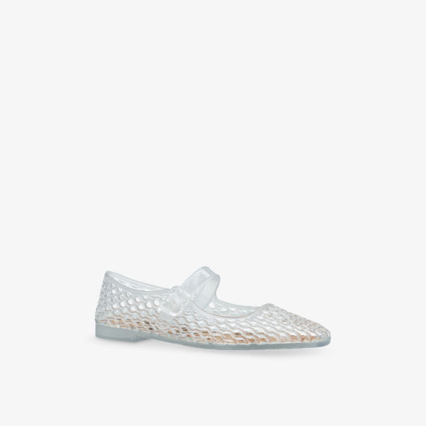 Закрытый квадратный носок, ремешок Mary Jane, гелевая текстура по всей поверхности, сетчатый дизайн, тисненый логотип сзади