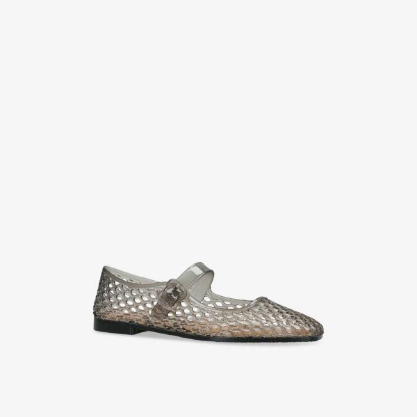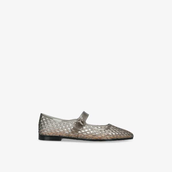 Закрытый квадратный носок, ремешок Mary Jane, гелевая текстура по всей поверхности, сетчатый дизайн, тисненый логотип сзади