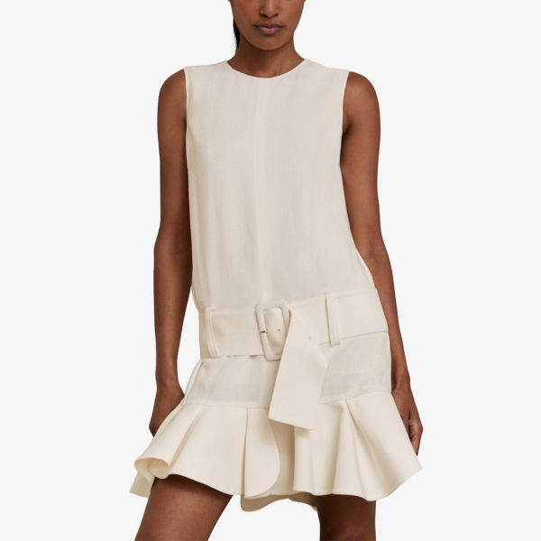 Платье мини Reiss без рукавов с поясом, белый 25 823₽