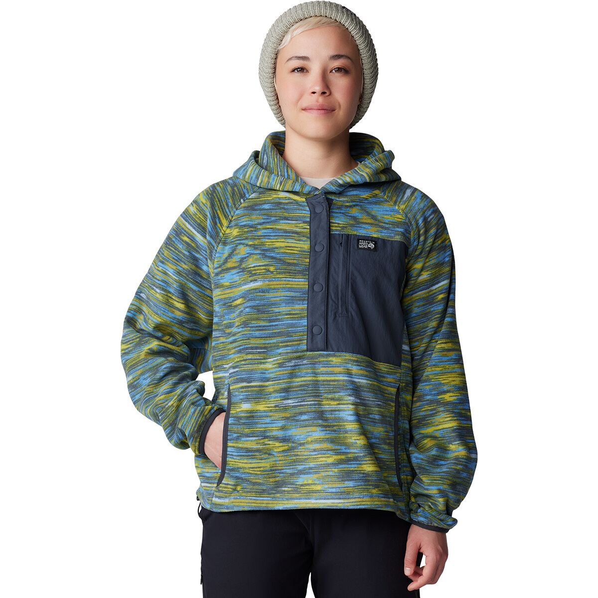 Оставайтесь в тепле и стильной с женским свитером Microchill Snap Neck, идеально сочетающим в себе функциональность и комфорт. Этот свитер из легкого переработанного микрофлиса мягкий на ощупь и обеспечивает необходимое количество тепла для приключений в прохладную погоду. Застежка на кнопке на капюшоне добавляет современный вид и позволяет легко регулировать температуру, а карман-кенгуру обеспечивает уютное убежище для замерзших рук.