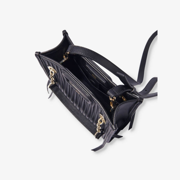 Квадратный силуэт, регулируемый и съемный плечевой ремень, двойные ручки из цепочки и кожи сверху, принт с логотипом спереди, одно основное отделение, один внутренний накладной карман, золотистая фурнитура