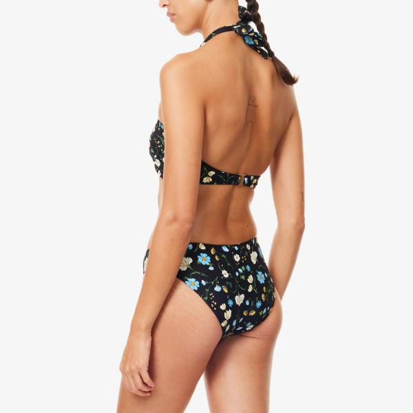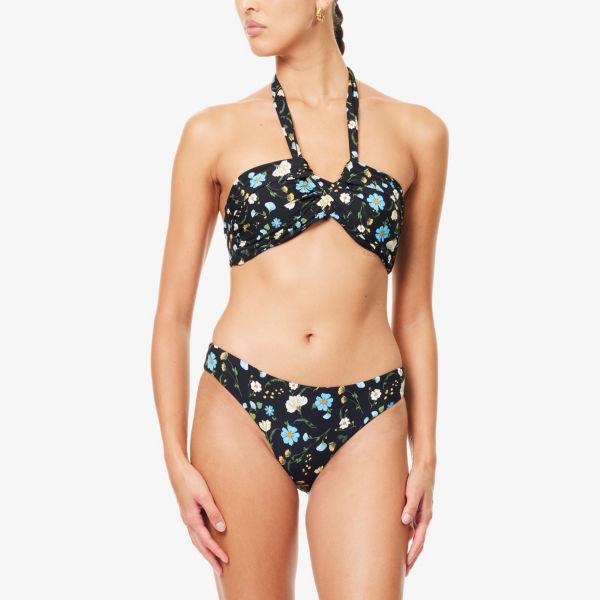 Халтер, перекрученный спереди, плиссированные чашечки с подушечками, цветочный принт по всей поверхности, боковые вставки, полностью на подкладке