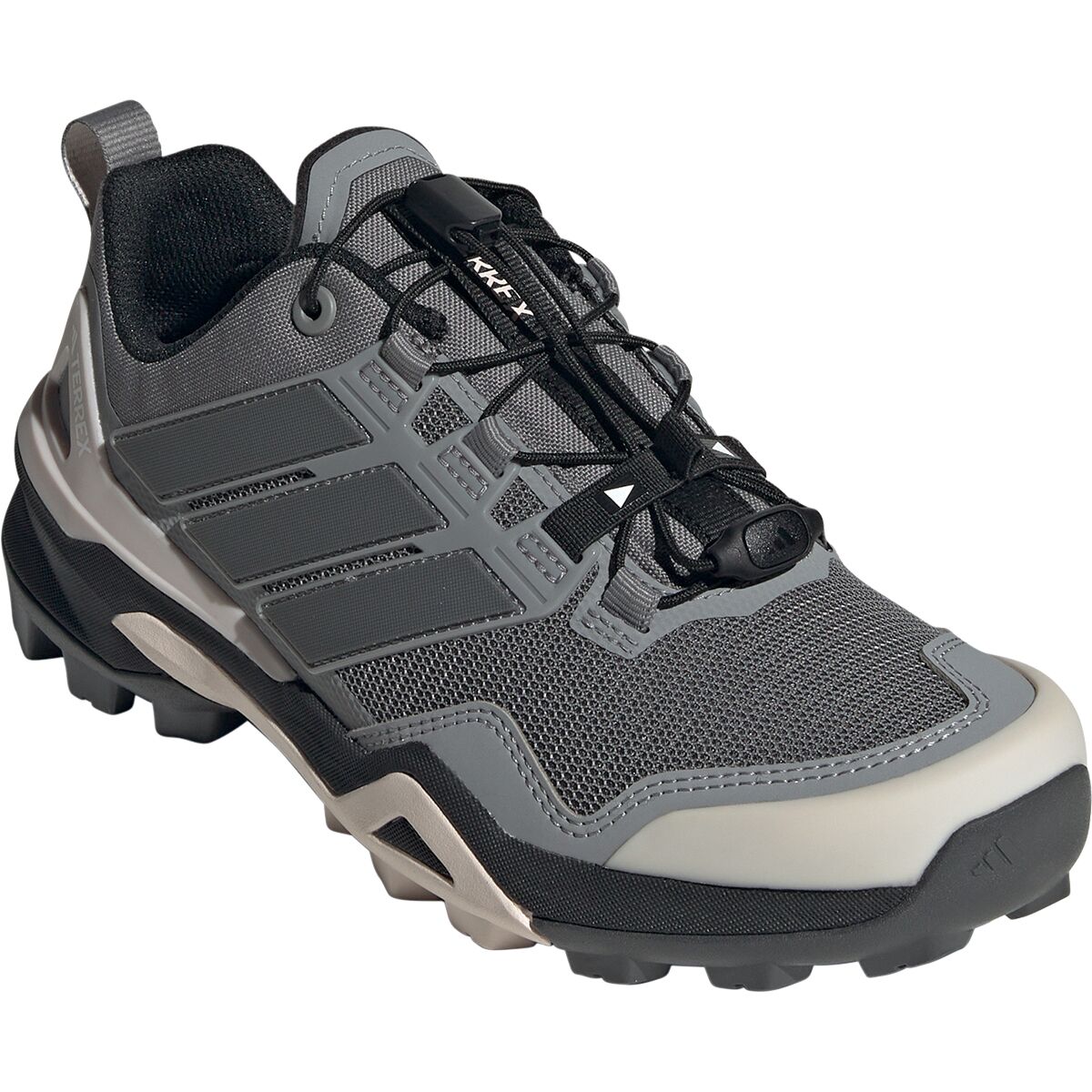 Кроссовки Terrex Skychaser, созданные для сложных подъемов и разнообразного рельефа, оснащены подошвой Continental Rubber для надежного сцепления как с мокрой, так и с сухой поверхностью. Система быстрой шнуровки обеспечивает плотную посадку за считанные секунды, а язычок с клиновидными вставками не допускает попадания мусора внутрь, обеспечивая комфорт на любой неровной тропе.