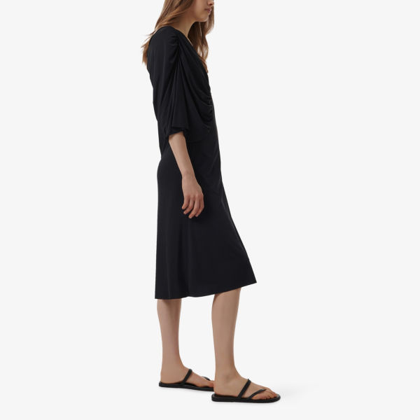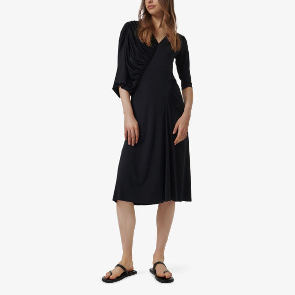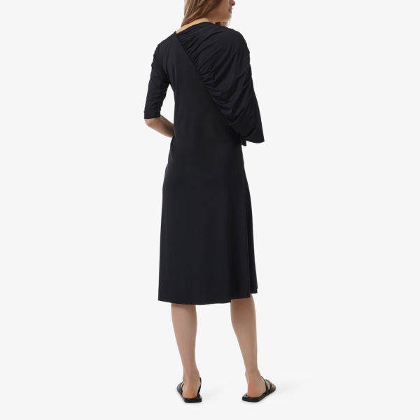 Платье миди Leem из ткани с драпированными вставками асимметричное, черный