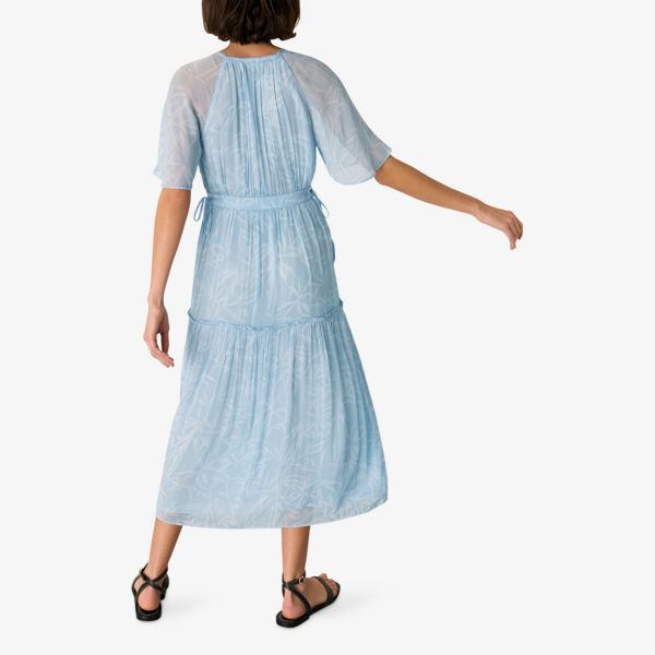 Платье миди Whistles с принтом "собранные листья", голубой 15 304₽