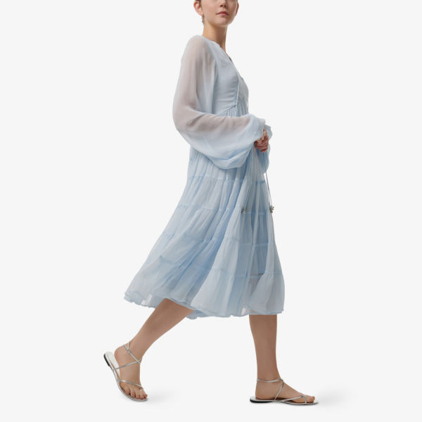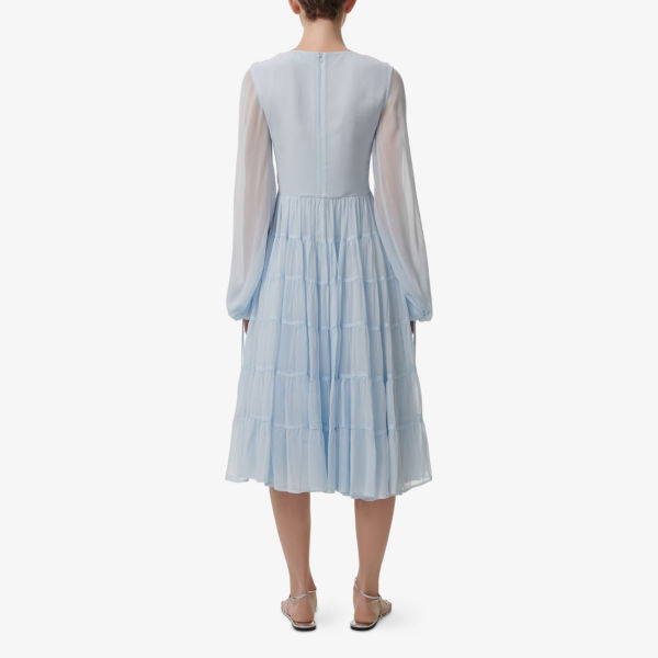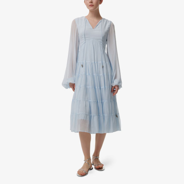 Платье миди Leem с рисунком, завышенной талией и ярусами, синий