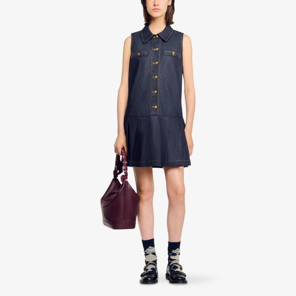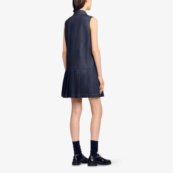 Платье мини Sandro из денима с плиссированной юбкой без рукавов, синий 28 418₽