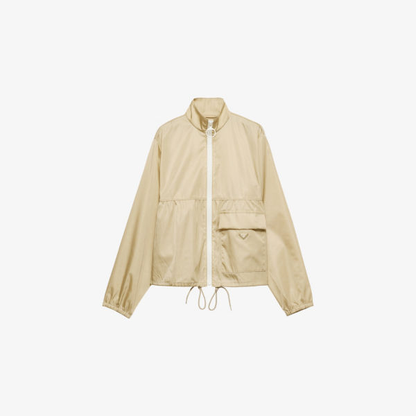 Куртка Prada Re nylon с контрастной молнией и накладным карманом, бежевый