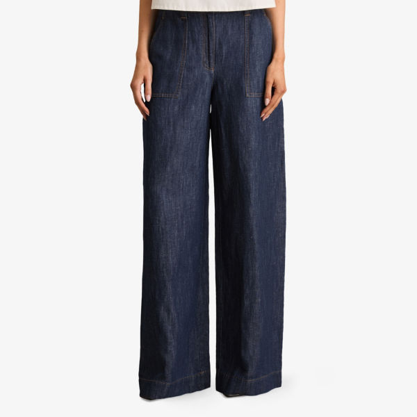 Брюки Reiss Ashby из денима с добавлением льна, индиго