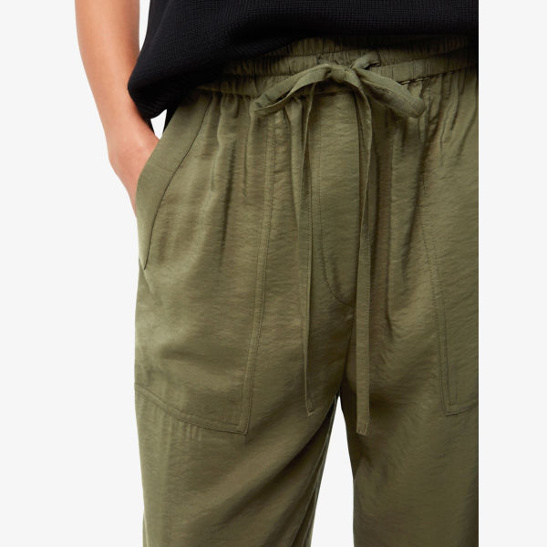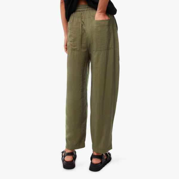 Эластичный пояс, кулиска на талии, четыре накладных кармана, свободный крой, укороченная длина