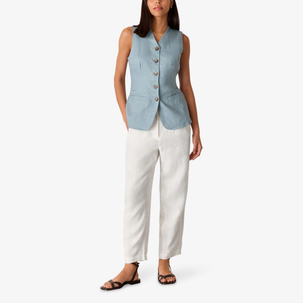 Классический крой, средняя посадка, облегающие штанины, эластичный пояс, накладные карманы спереди, карманы сзади