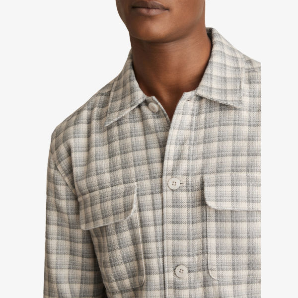 Классический крой, отложной воротник, длинные рукава, манжеты на пуговицах, нагрудные карманы, клетчатый узор по всей поверхности